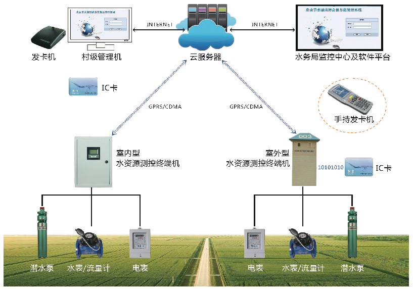 農(nóng)田機井灌溉管理系統(tǒng)以IC卡刷卡取水的方式取代了傳統(tǒng)的專人管理方式,根據(jù)灌溉用水